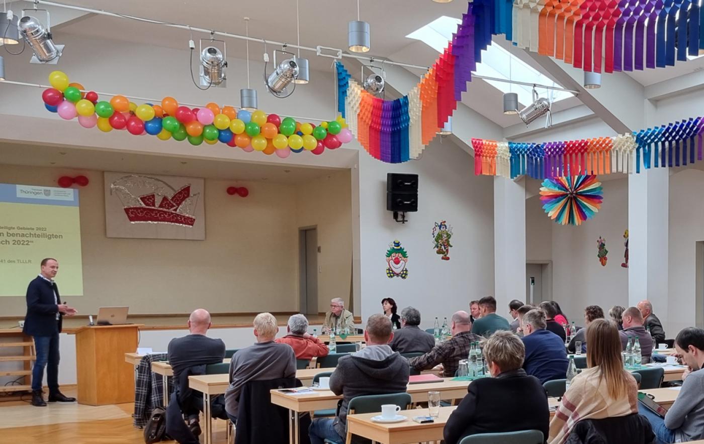 Thomas Lettau aus dem Thüringer Ministerium für Infrastruktur und Landwirtschaft (TMIL) gab im Verlauf der Tagung zum einen Einblicke in die Konditionalitäts-Herausforderungen ab 2023 und stelte zum anderen die Regelungen und betriebswirtschaftlichen Analysen zur Entwicklung der Ausgleichszulage ab 2026 vor.