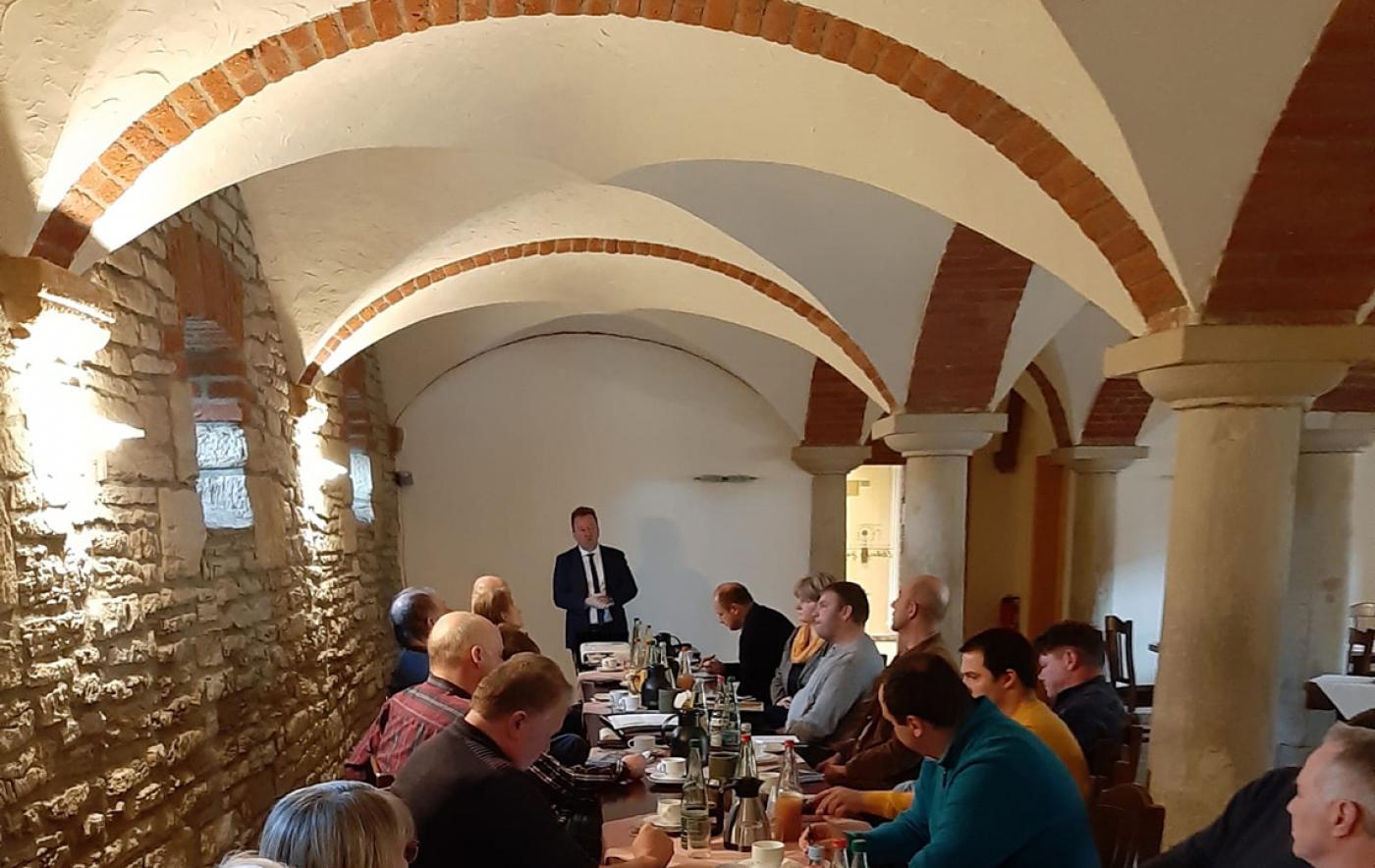 Die Vorstände der Kreisverbände Saale-Orla, Saalfeld-Rudolstadt und Saale-Holzland trafen sich am 12. Januar zur traditionellen gemeinsamen Sitzung. Der gastgebende Betrieb, die Agrargenossenschaft Buchheim-Crossen eG, bot am Standort in Etzdorf den anwesenden 23 Landwirtinnen und Landwirten eine gute Basis, um kreisübergreifend ins Gespräch zu kommen.