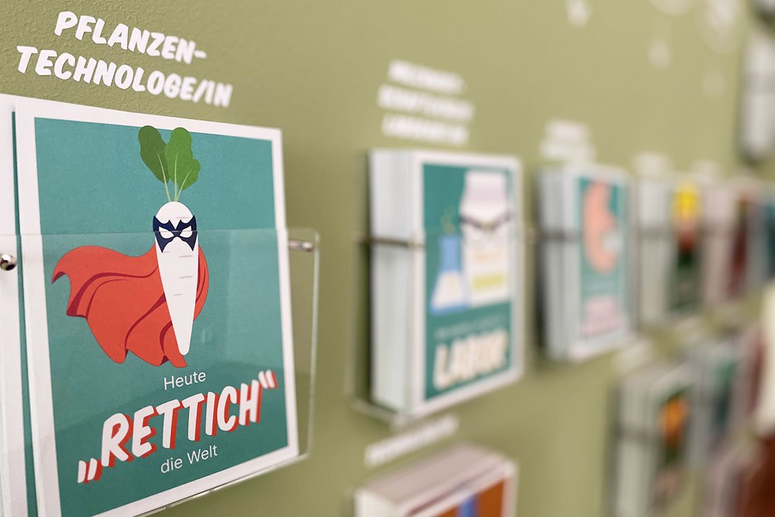 Um die junge Zielgruppe für eine „grüne“ Ausbildung zu begeistern, setzt das Ausstellungskonzept auf mediale Inhaltsvermittlung. Mit interaktiven Medienstationen werden die Besucherinnen und Besucher animiert sich spielerisch über die „grünen Berufe“ und deren Ausbildung zu informieren.