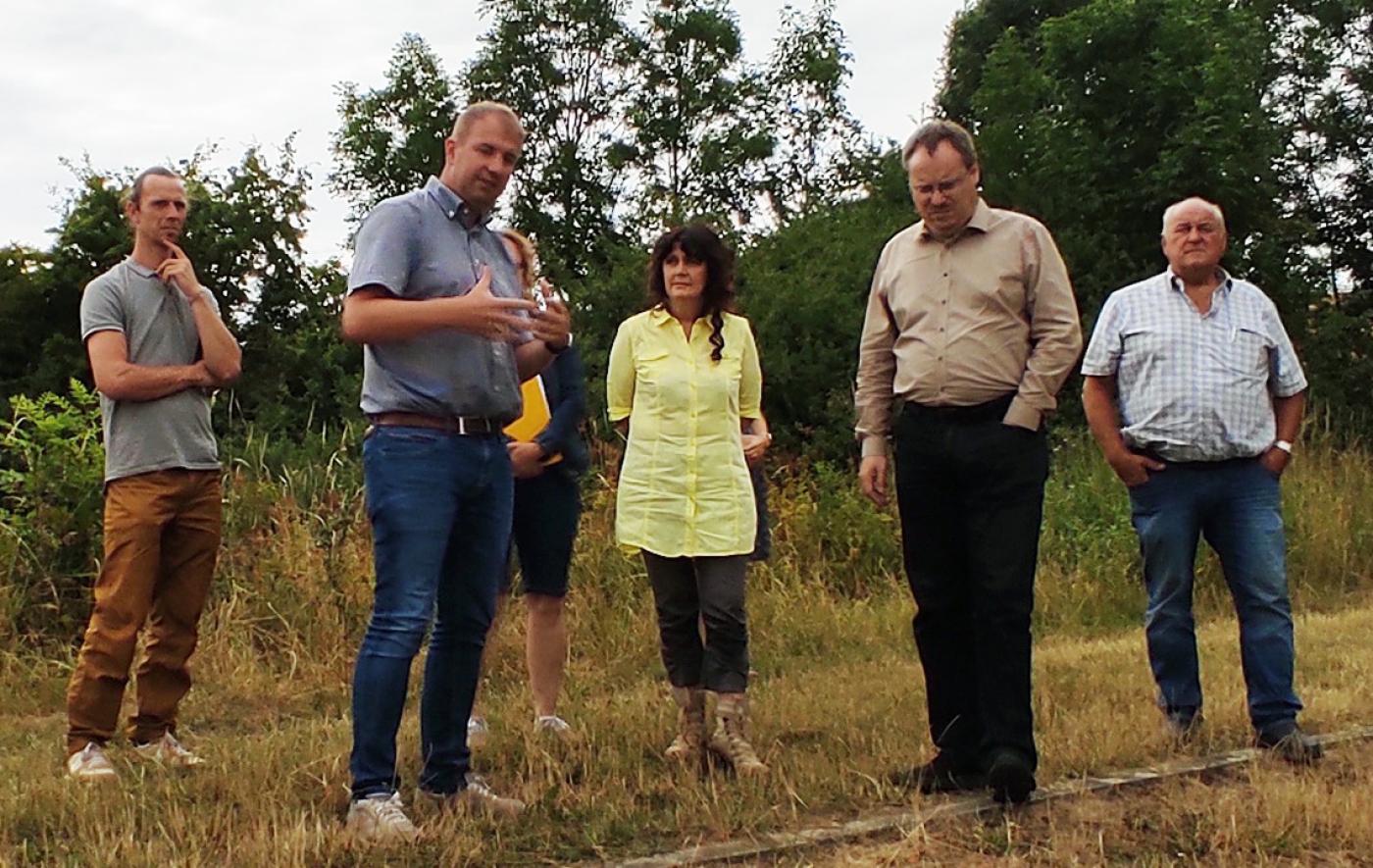Aber auch die Flurfahrt mit Herrn Landrat Onno Eckert im Kreis Gotha, die von Wechmar/Schwabhausen über Goldbach/Warza nach Sonneborn führte, bot eine weitgefächerte Themenpalette. Neben den ebenfalls erörterten Fragen der Versorgungssicherheit und Energie standen hier auch Tierwohl und Baurecht im Mittelpunkt. Die Ausweisung der Gewässer 2. Ordnung, die in ganz Thüringen, infolge der unterschiedlichen Ausweisungspraxis, weiterhin für Diskussionen sorgt, war auch am 28. Juli selbstverständlich wieder Thema. Unverändert gibt es „Gräben“ die als Gewässer eingestuft wurden, obwohl sie in der Landschaft nicht mehr vorhanden oder nutzbar sind bzw. keine Funktion mehr erfüllen. Auch gäbe es immer noch Diskrepanzen zwischen den Karten der Unteren Wasserbehörden und der veröffentlichten Karte des TLUBN. Hier besteht weiterer Gesprächsbedarf auf mehreren Ebenen und in den Regionen. Aber auch Themen der Beschleunigung von Baugenehmigungsverfahren, der Personalausstattung und fachlichen Expertise der Verwaltungen (vor dem Hintergrund der Demographie) und eine bessere Abstimmung zwischen Verwaltung und Berufsstand wurden angesprochen.