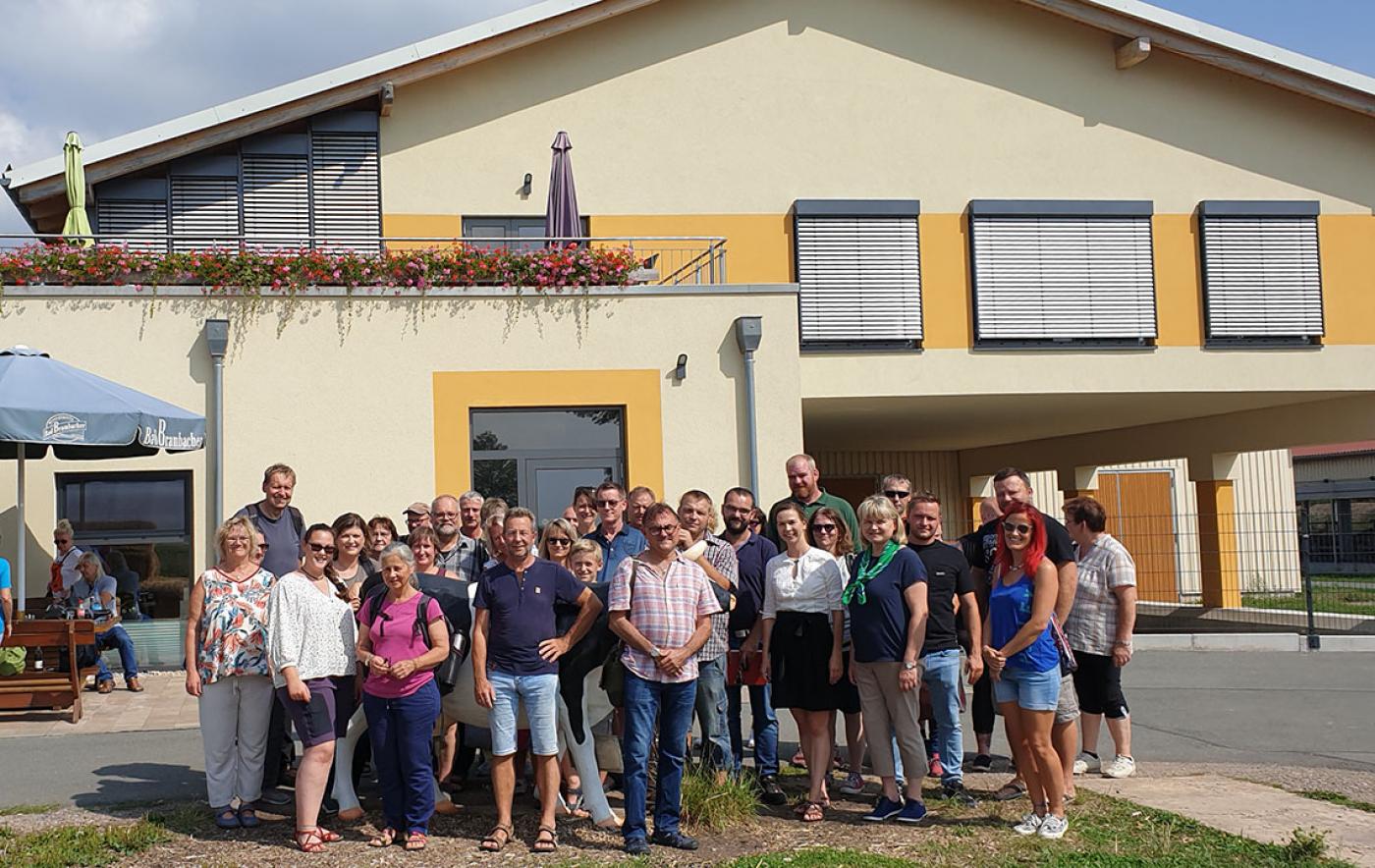 Nach dem Mittagessen erfolgte ein geführter Rundgang durch den Gastbetrieb. Hans-Jürgen Plötner demonstrierte hier nicht ohne Stolz seine moderne Landwirtschaft in der Tier- und Pflanzenproduktion bis hin zur Direktvermarktung im Hofladen. Hoffentlich motiviert und angefüllt mit neuen Ideen und Eindrücken traten alle nach einem abschließenden Gruppenfoto die Heimreise an.
