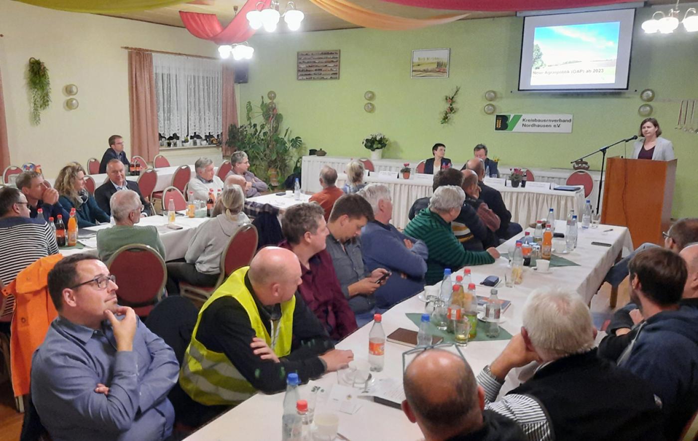 Am Montag, den 14. November fand die diesjährige Mitgliederversammlung des Kreisbauernverbandes Nordhausen in Günzerode statt. Eine umfangreiche Tagesordnung galt es abzuarbeiten. So stellte sich der Präsident des Thüringer Bauernverbandes (TBV) Dr. Klaus Wagner den teilweise auch kritischen Fragen unserer Mitgliedschaft zur Agrarpolitik – wie agiert der Deutsche Bauernverband (DBV) besonders bei der GAP, aber auch zur Verbandsarbeit vom TBV und DBV. Die Kreisvorsitzende Betina Pietzer, gab einen ausführlichen Bericht über das Geschäftsjahr 2021. Die TBV- Referentin Anja Nußbaum berichtete erneut über das kompakte Thema „GAP – Was erwartet uns“. Dr. Klaus-Dieter Röver (TLLLR), Zweigstellenleiter in Bad Frankenhausen, sicherte den Landwirtinnen und Landwirten Unterstützung zu, wenn es Fragen oder Probleme bei der Antragstellung im kommenden Jahr gibt.