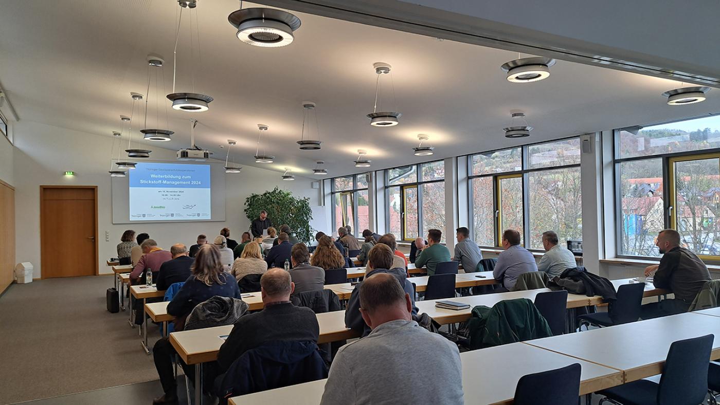 Die Weiterbildungen der Gewässerschutzkooperationen finden im Wechsel statt. Vergangenes Jahr stand der Teilbereich Erosionsschutz im Fokus, dieses Jahr der Teilbereich Stickstoff. Die Teilnehmenden bekamen zu Beginn einen Einblick in die Arbeit des Julius-Kühn-Instituts, welches mit der Erarbeitung eines bundeseinheitlichen Monitoringsystem von Nitratfrachten in der Landwirtschaft betraut ist. Diese Arbeit läuft über das Demonstrationsvorhaben „MoNi“. Daraus ergab sich das Interesse an dem Projekt N-Management in der Landwirtschaft des Thüringer Bauernverbandes. Ziel des Projektes ist die Erkundung landwirtschaftlicher Stickstoffeinträge in das Grundwasser mit anschließender Entwicklung von standortspezifischen Maßnahmen zur Reduzierung von Stickstoffeinträgen im Raum Neumark/Berlstedt. Die verantwortlichen Mitarbeiter nahmen an dem Abschlusstreffen des genannten Projektes am 28. November teil. Über den Abschlussworkshop berichten wir im kommenden Wochenbericht.