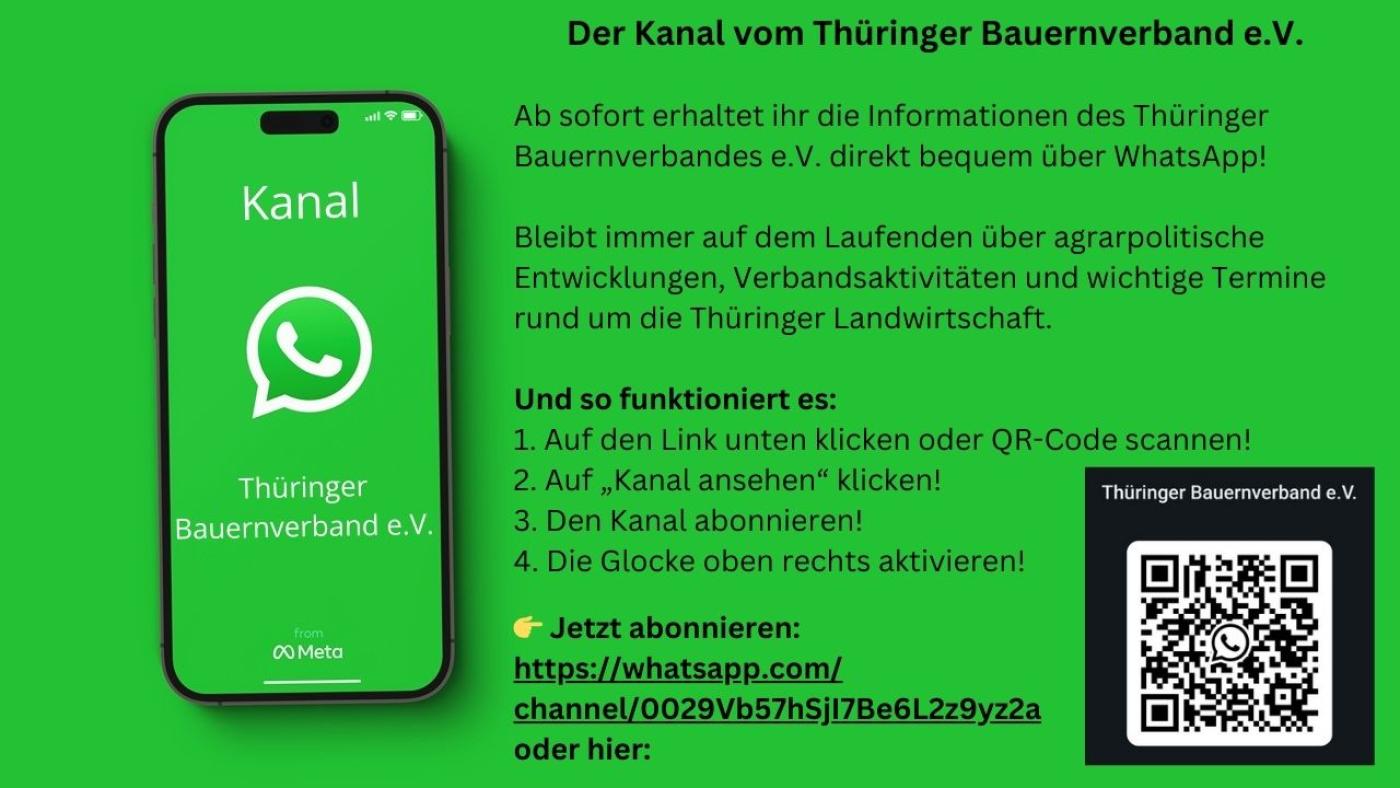🆕 Jetzt auf WhatsApp: Der Kanal des Thüringer Bauernverbandes e.V.!