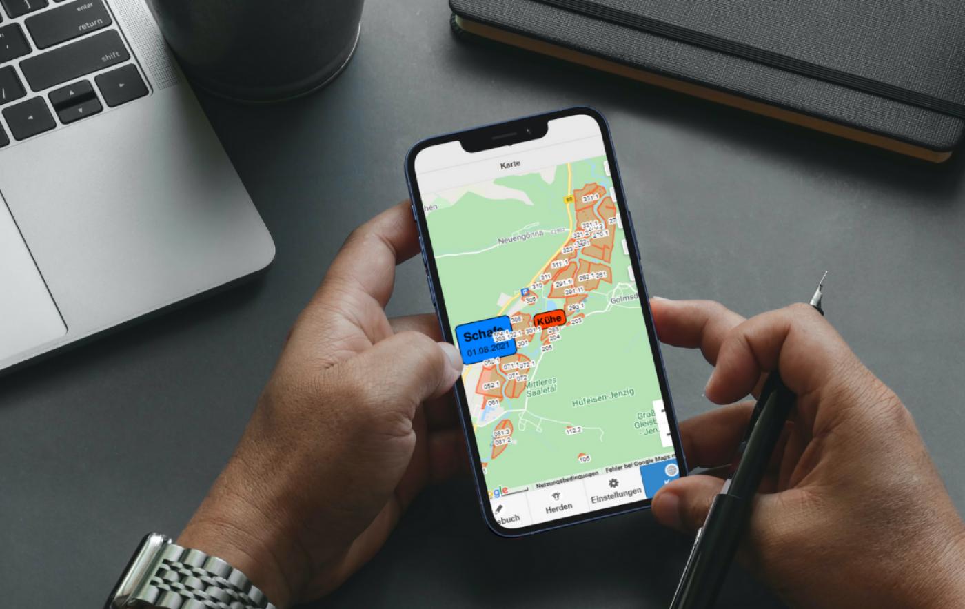 Aus Anlass der Auflagen der Düngeverordnung (DüVO) wurde zu Beginn des Jahres die Entwicklung eines elektronischen Weidetagebuches in Angriff genommen. Das Konzept klingt simpel und ist vielversprechend. Auf das Mobilgerät werden die Flächengeometrien aus der VERA und die selektierten HIT-Tierlisten je Herde geladen (Weidegruppe) und schon kann das Tagebuch starten. Beim Auftrieb auf die Koppel wählt der Weidewart nur die Herde aus und drückt auf „Auftrieb“. Jeder neue Auftrieb ist gleichzeitig der Abtrieb von der vorherigen Koppel, kann muss also nicht extra gebucht werden.